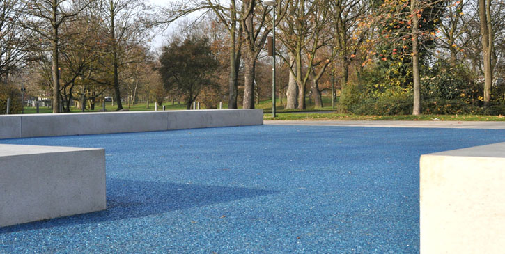Bei der Umgestaltung des Vorplatzes zum Lüner Rathaus stand die konsequente Fortsetzung der ursprünglichen Architekturidee im Vordergrund. Die Fläche der ehemaligen Wassertreppe wird durch eine begehbare, illuminierte Glasfläche neu interpretiert. Tagsüber spiegelt sich der Lüner Himmel in dem begehbaren Plateau und taucht es in Farbtöne von türkis bis lichtblau. In der Nacht verleihen wellenförmig ausbreitende Lichtkreise, die die blaue Glasfläche durchbrechen, dem Platz einen lebendigen Kern.